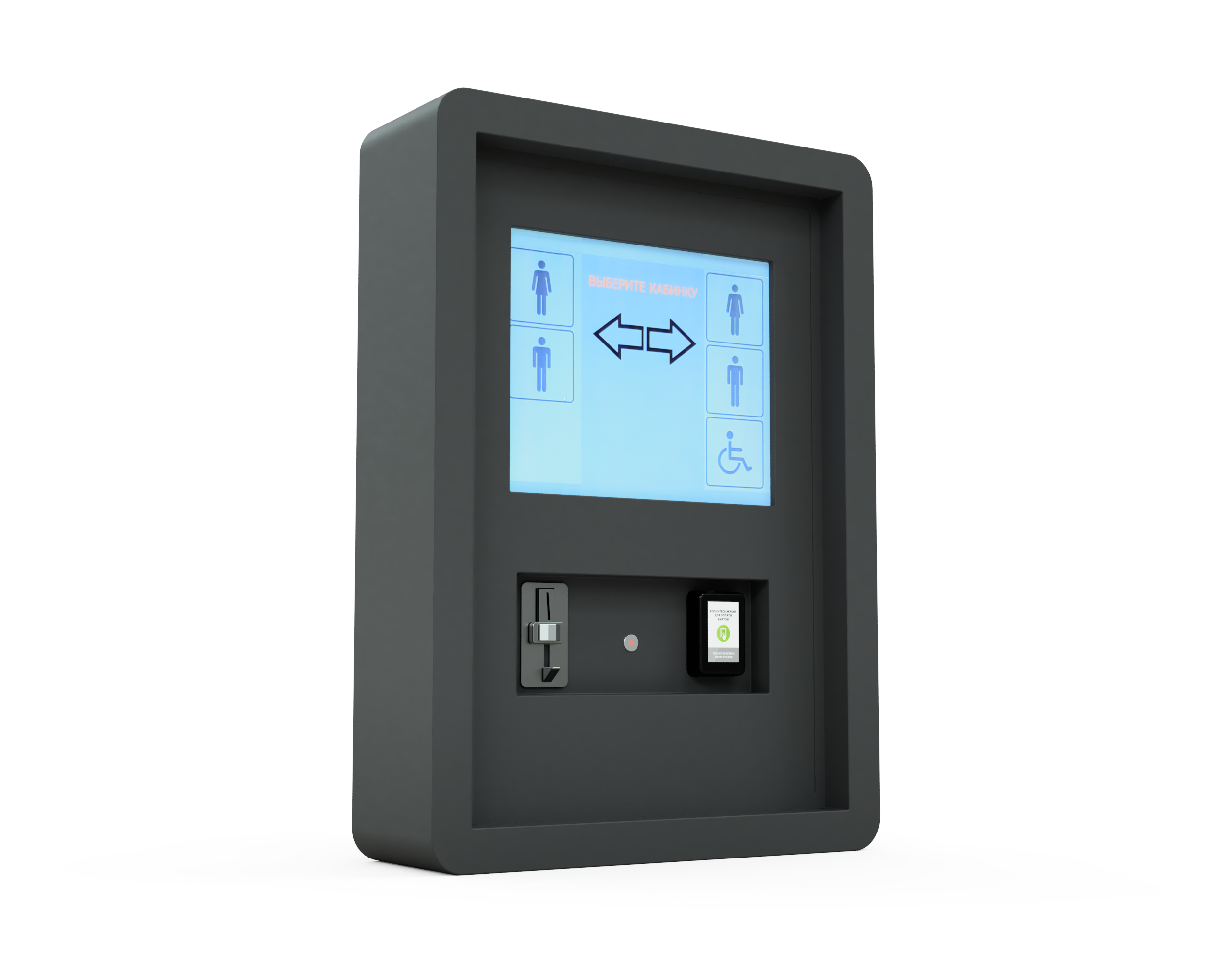 На передней панели размещены сенсорный дисплей с диагональю 17 дюймов, считыватель карт, приёмная щель монетоприёмника и банковский POS-терминал.