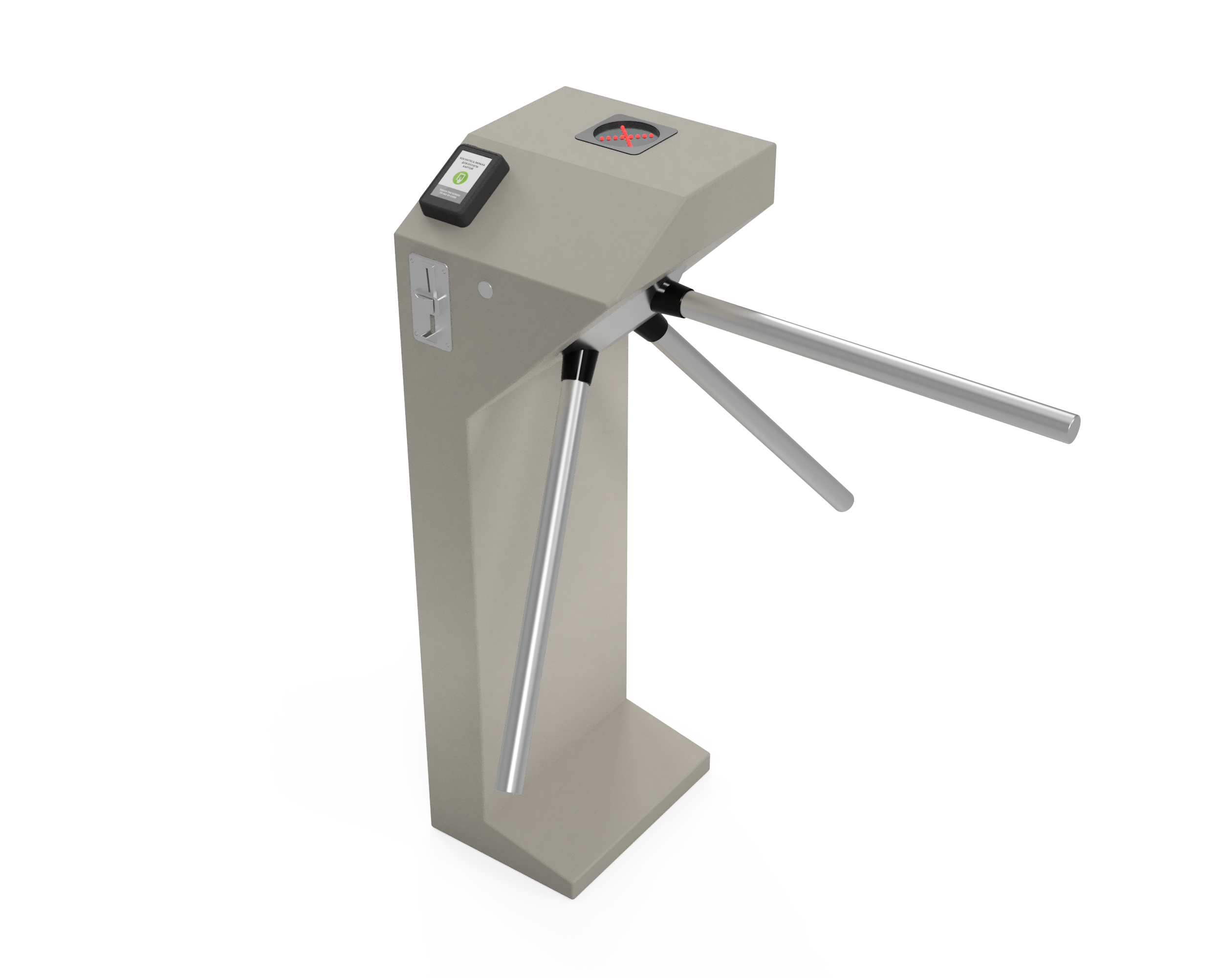 Корпус выполнен из стали с долговечным порошковым покрытием, проходные штанги — из нержавеющей стали. При отключении питания штанги автоматически опускаются, обеспечивая беспрепятственный выход.