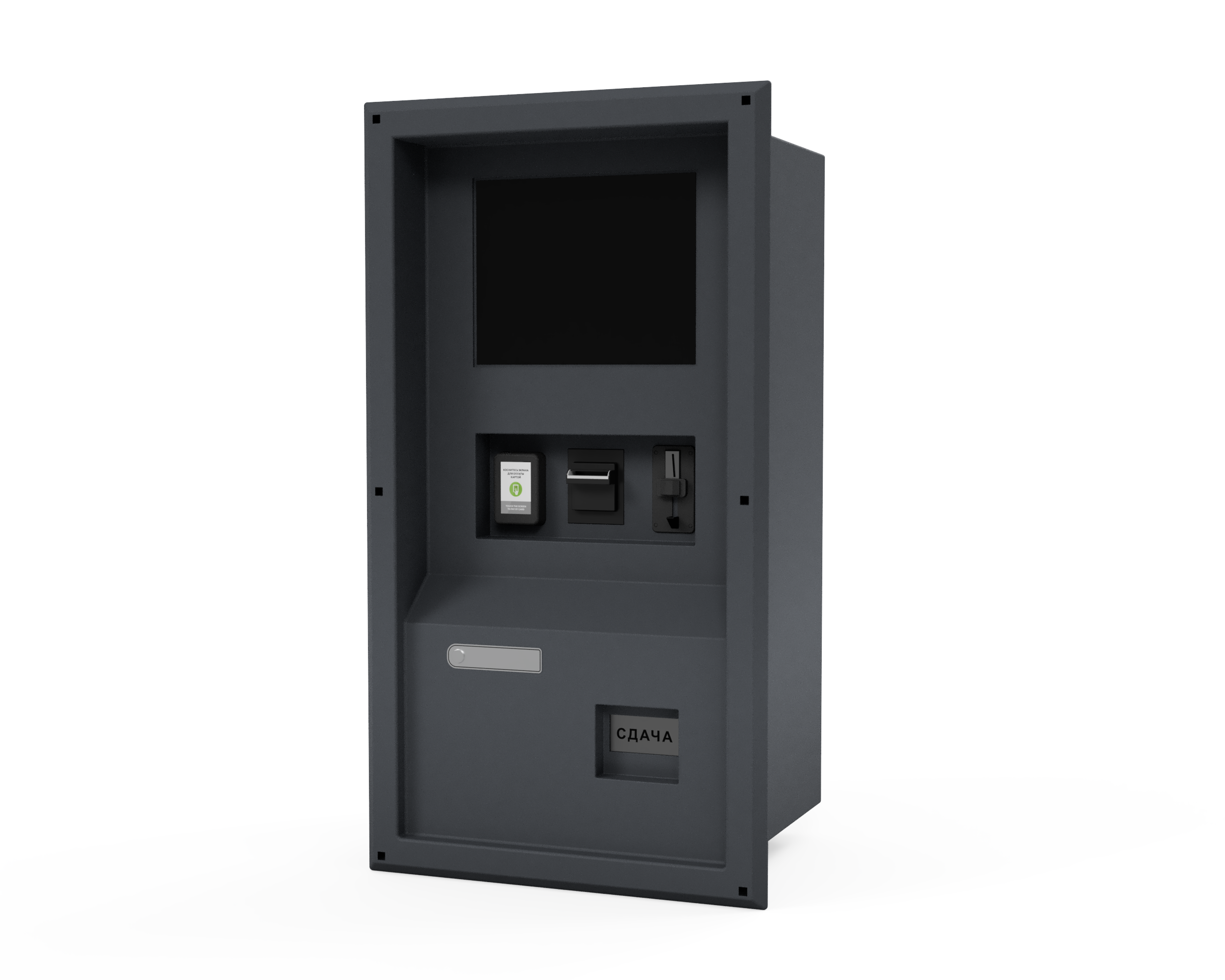 Задняя дверь, предназначенная для технического обслуживания и инкассации, оснащена надёжным сейфовым ригельным замком. Корпус покрыт долговечной порошковой краской.
