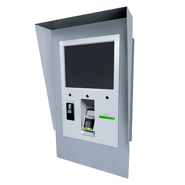 На передней панели размещены дисплей с диагональю 17 дюймов, считыватель карт, кнопки управления, приёмная щель монетоприёмника и отверстие для выдачи фискального чека.