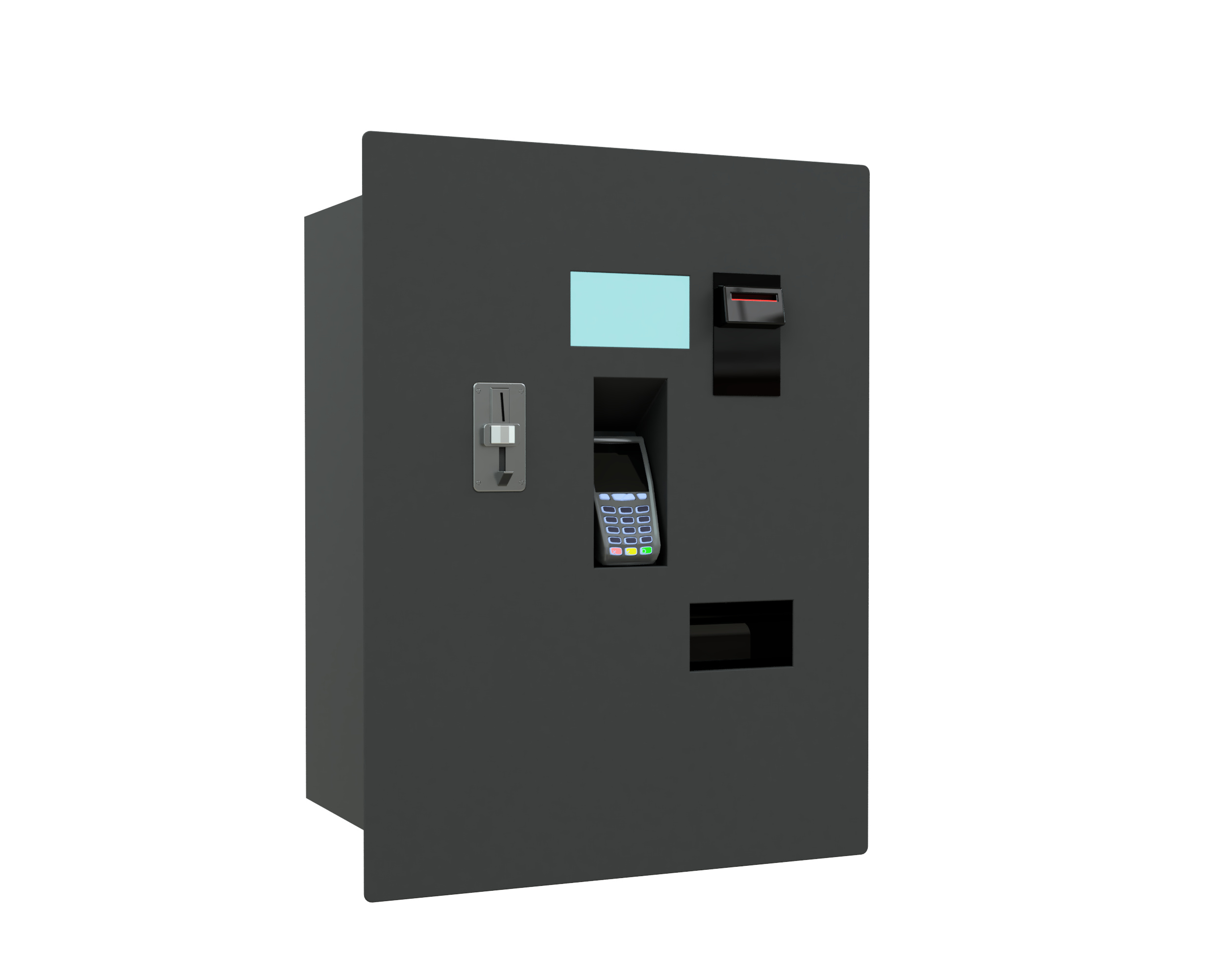 Задняя дверь для технического обслуживания и инкассации оснащена надёжным сейфовым ригельным замком. Корпус покрыт долговечной порошковой краской.